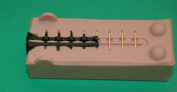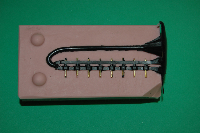 I set some wire in the mold which will produce the holes for the plug wires to fit into. |