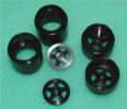 There are 6 pieces to each set as you will see in following pictures. The pictures do not really do justice to the wheels, but you will get the idea. Click the thumbnails for a larger view of the wheels.