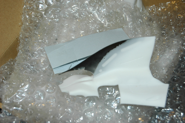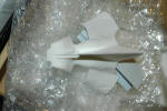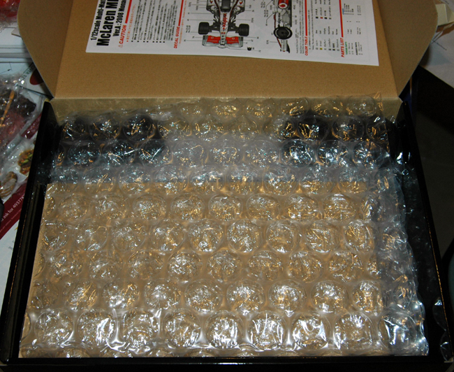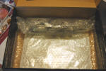 With another piece of bubble wrap on top of the white metal parts. The rims at