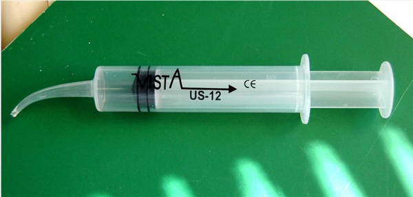 the first syringe with the curved nose. I squeezed the plunger until some