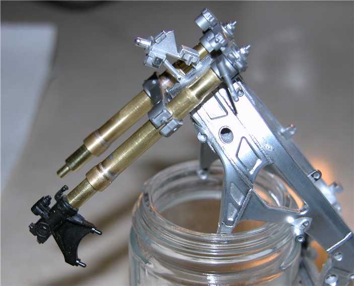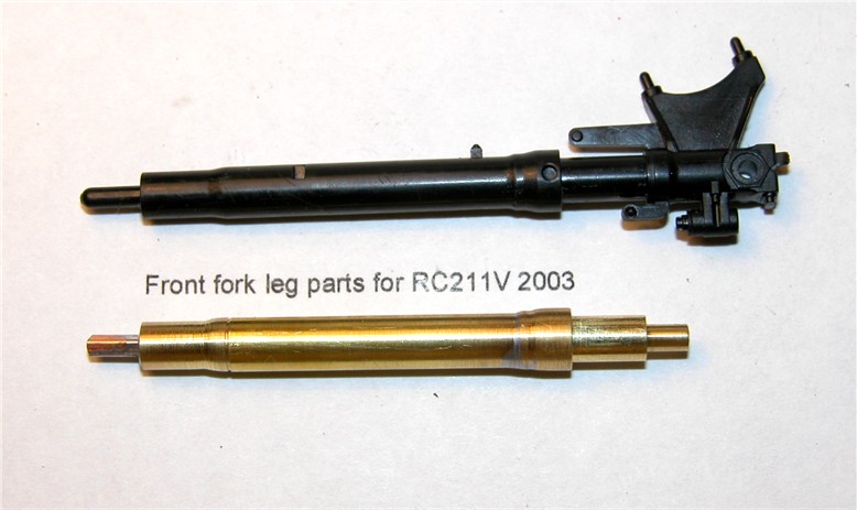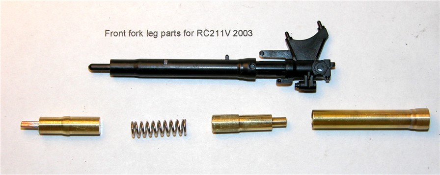 Parts laid out next to Tamiya kit fork leg |
